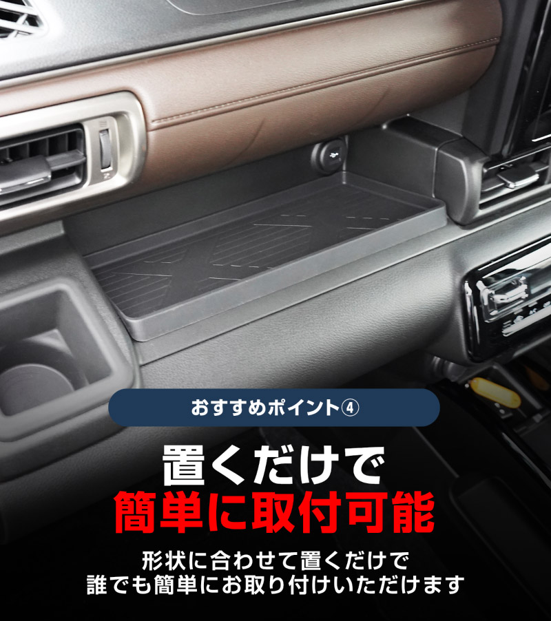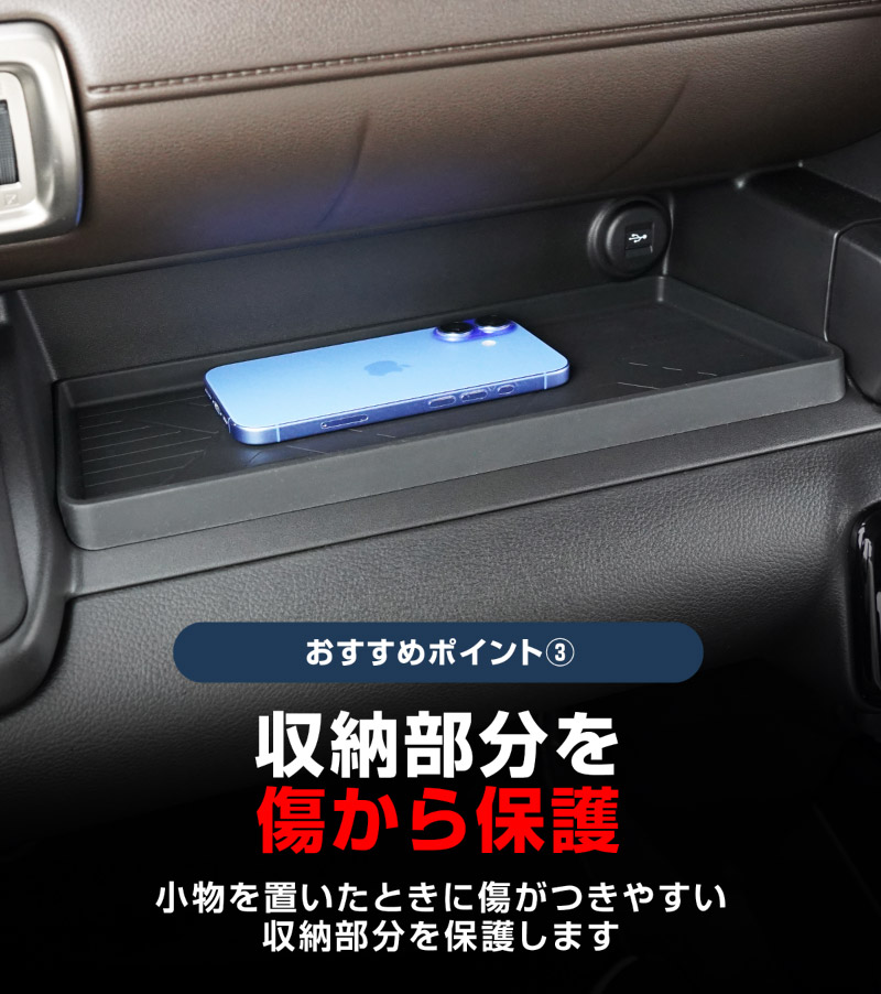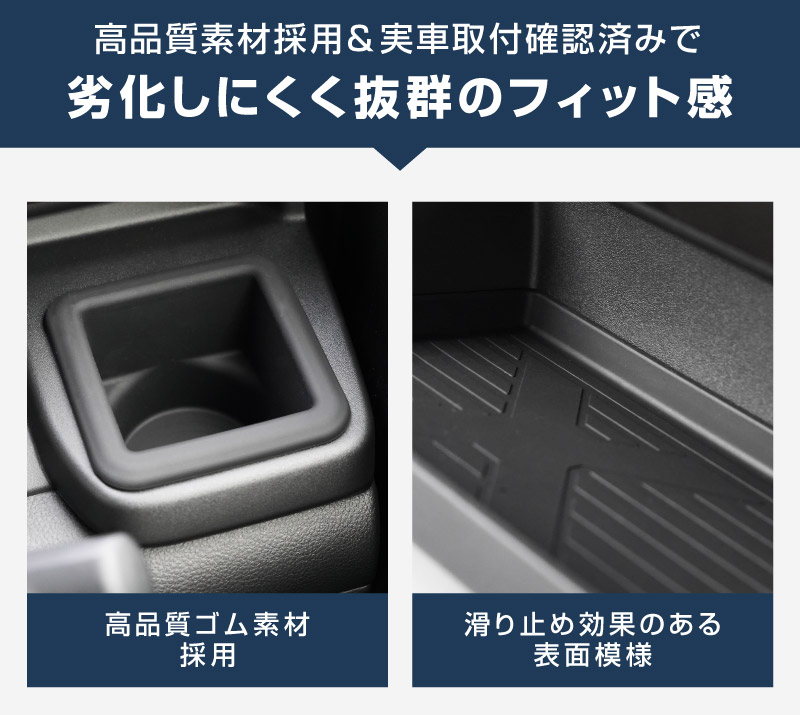 滑り止め効果もあるため、走行中でも中の物がズレにくく、ガタつきによる異音やキズの防止にも役立ちます。