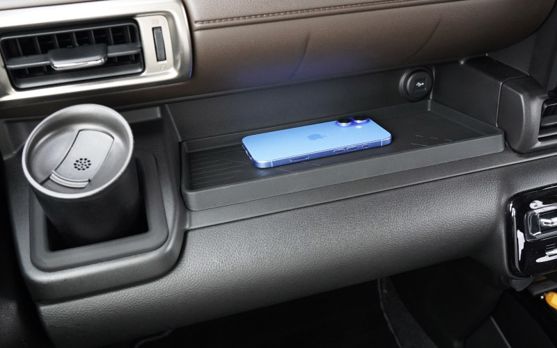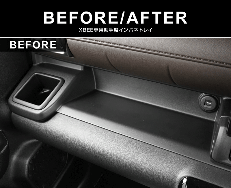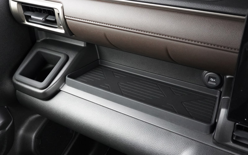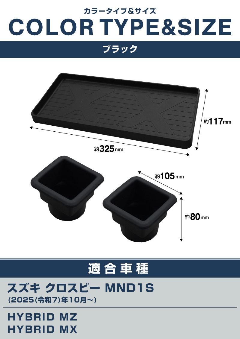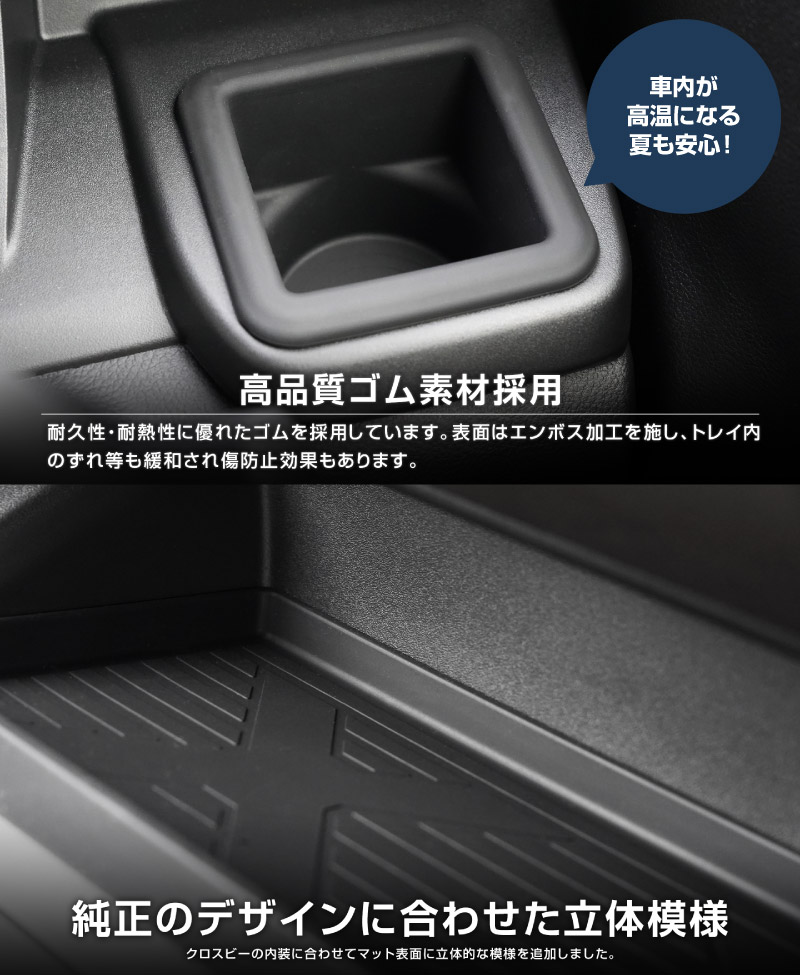 新型クロスビー専用設計の助手席インパネおよびフロントドリンクホルダーに装着するトレイのセットです。