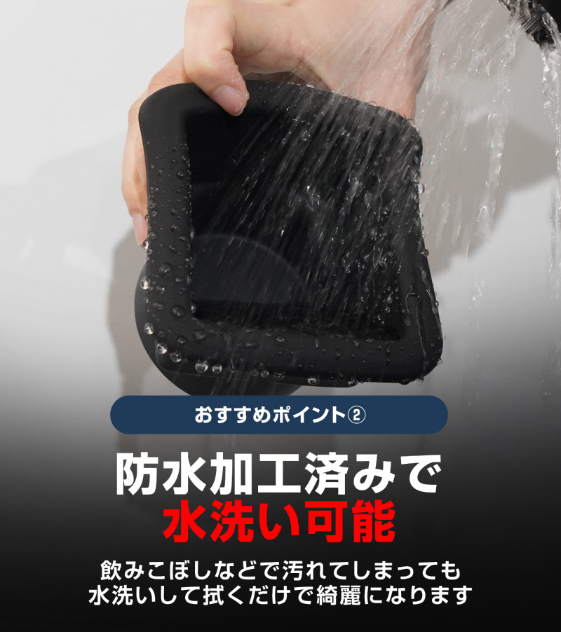 素材には防水性に優れたゴムを使用しており、汚れてもサッと取り外して水洗いできるので、お手入れもラクラクです。