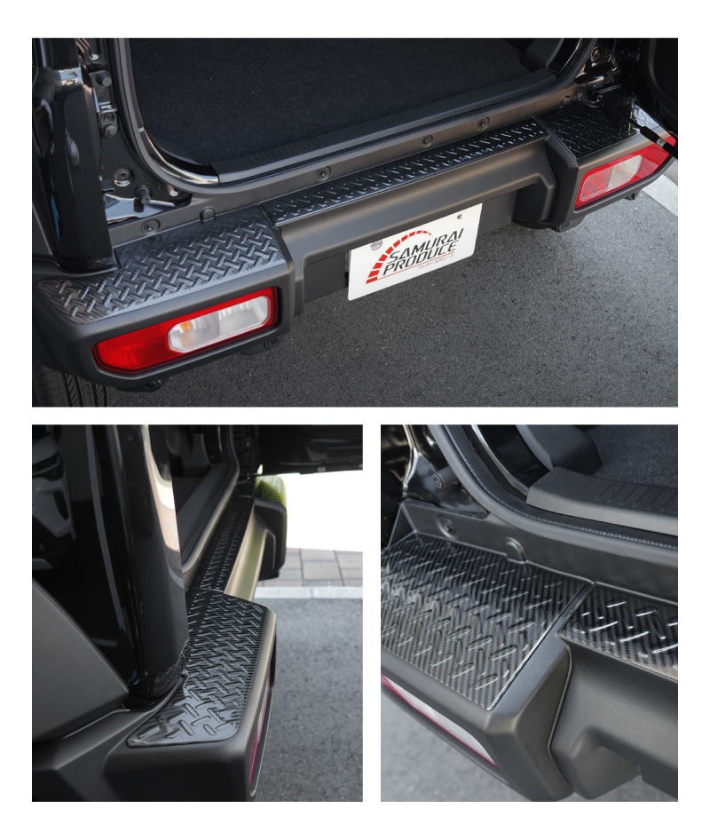 ジムニーシエラ ジムニーノマド リアバンパープレート 縞鋼板柄 3P 選べる3カラー シルバーヘアライン ブラックヘアライン カーボン調|スズキ SUZUKI JIMNY SIERRA JB74W JIMNY NOMADE JC74W 専用 保護 パーツ カスタム 専用 パーツ ドレスアップ アクセサリー 社外品 エアロ オプション【予約販売/ブラック:2月20日頃、シルバー・カーボン調:2月28日頃入荷予定】