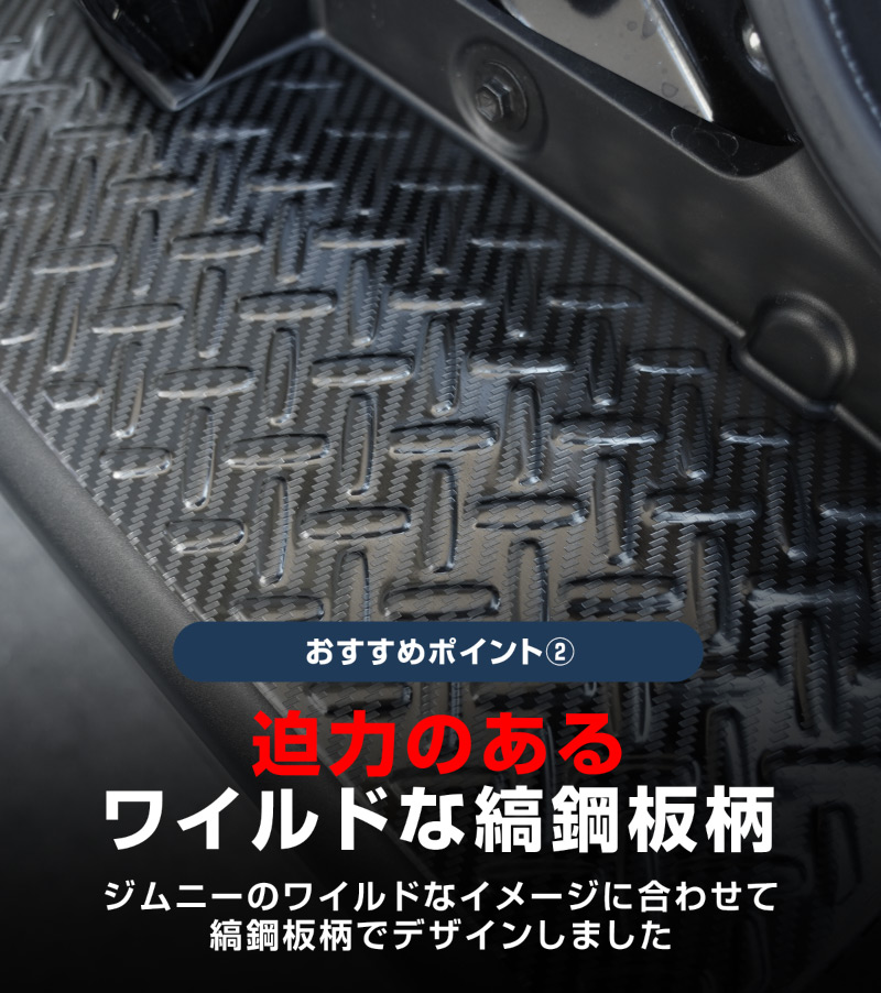 ワイルドさに拍車をかける縞鋼板柄で仕上げており、ジムニーシエラに最適なデザインに仕上がりました。