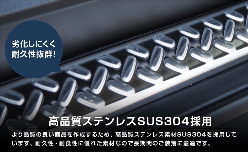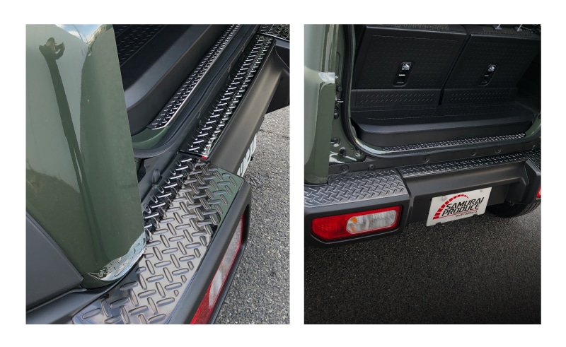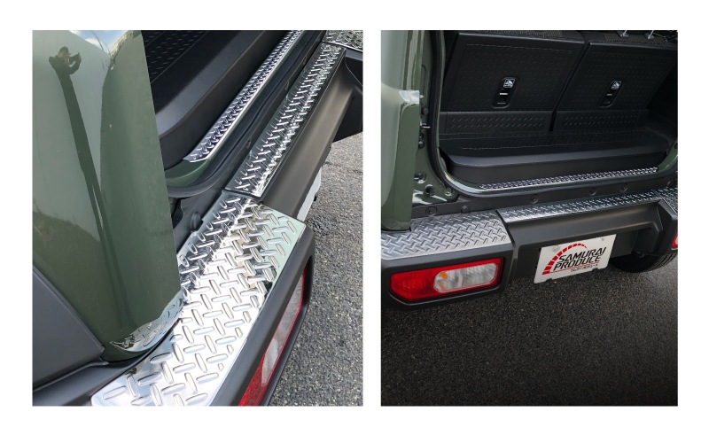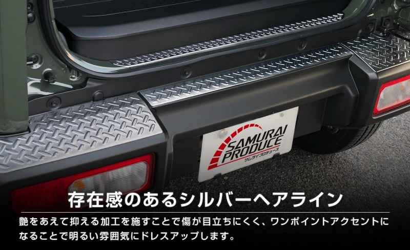| ジムニーシエラ専用のラゲッジエンド・リアバンパー上部を保護しながらドレスアップできる専用パーツです。 アウトドアでも街中でもワイルドに映えるジムニーの個性をさらに引き立てます。 荷物の積み下ろしで傷つきやすい部分をしっかりガード。縞鋼板柄デザインはジムニーの力強さにマッチするだけでなく滑り止め効果で安全性も兼ね備えています。 両端を斜めカットに仕上げることでスポーティーさを演出したサムライプロデュースオリジナルデザインです。 素材には高品質ステンレスSUS304を採用し耐久性にも優れています。 サムライプロデュース所有のデモカーで形状を確認して製作しているためフィッティングも抜群です。 裏面には両面テープを装着済み。大掛かりな作業は不要で、貼り付けるだけの簡単取り付けを実現しました。 デザイン・機能性・耐久性のすべてにこだわった「サムライプロデュースクオリティ」をぜひご体感ください。 |
