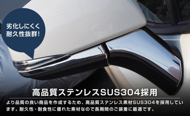 | RAV4専用設計のサイドミラー下部に装着するドレスアップパーツです。 サイドビューに美しい鏡面のシルバーをプラスすることで、ワンランク上のサイドビューに変化します。 立体的な形状で製作しているので、抜群のフィッティングを実現! サイドミラーの使用には一切干渉することのないRAV4の専用設計で安心したドレスアップが楽しめます。 素材には高品質ステンレスSUS304を使用しており抜群の耐久性。 安全性・機能性にも力を入れたサムライプロデュースクオリティを是非お楽しみください。 商品裏面に装着済みの、両面テープで取り付けるだけで簡単に商品到着後すぐにカスタムいただけます。 |