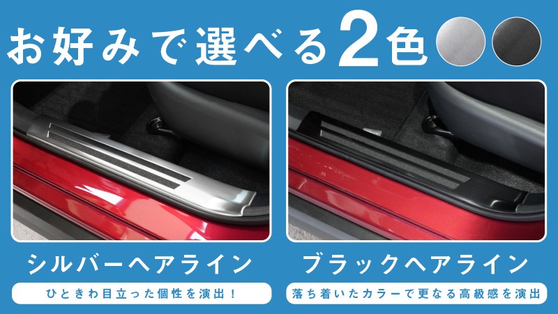 ライズ/ロッキー ハイブリッド車専用 サイトステップ内側 スカッフプレート フロント・リアセット 4P 滑り止め付き 選べる 2カラー シルバー/ブラック|トヨタ TOYOTA RAIZE ダイハツ DAIHATSU ROCKY 専用【予約販売/シルバー:12月20日頃入荷予定】