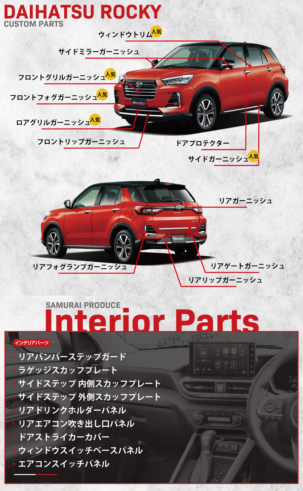 | ■ダイハツ ロッキー A202S A201S A210S【2019(令和元)年11月~】 【対応グレード】 Premium G HEV X HEV Premium G X L ■スバル レックス A202F A201F【2022(令和4)年11月~】 【対応グレード】 Z HYBRID G HYBRID Z G |