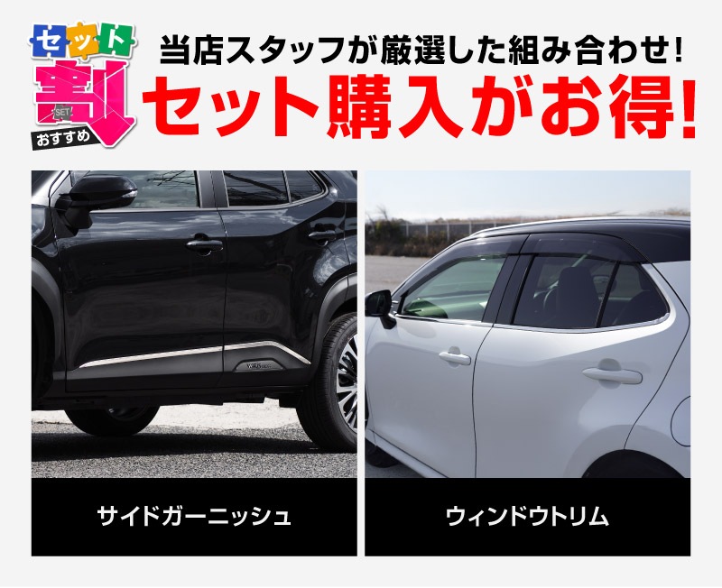 【2/15〜10%off】【セット割】ヤリスクロス ウィンドウトリム&サイドガーニッシュ 鏡面仕上げ 外装パーツ2点セット|トヨタ TOYOTA YARIS CROSS 専用 外装 サイド ウェザーモール カスタム パーツ ドレスアップ アクセサリー 社外品 オプション エアロ【予約販売/2月28日頃入荷予定】