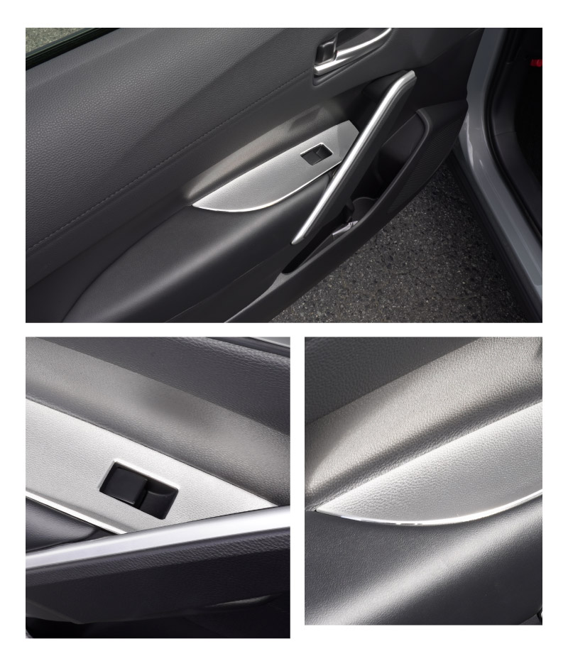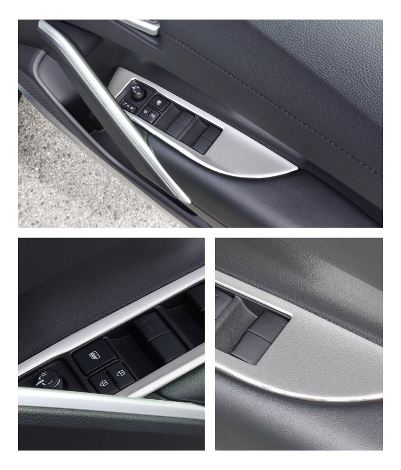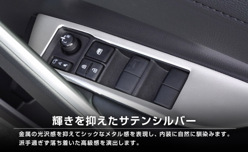 カローラクロス専用設計(日本仕様)、サイドドアのウィンドウスイッチパネル周辺に装着するドレスアップパーツです。