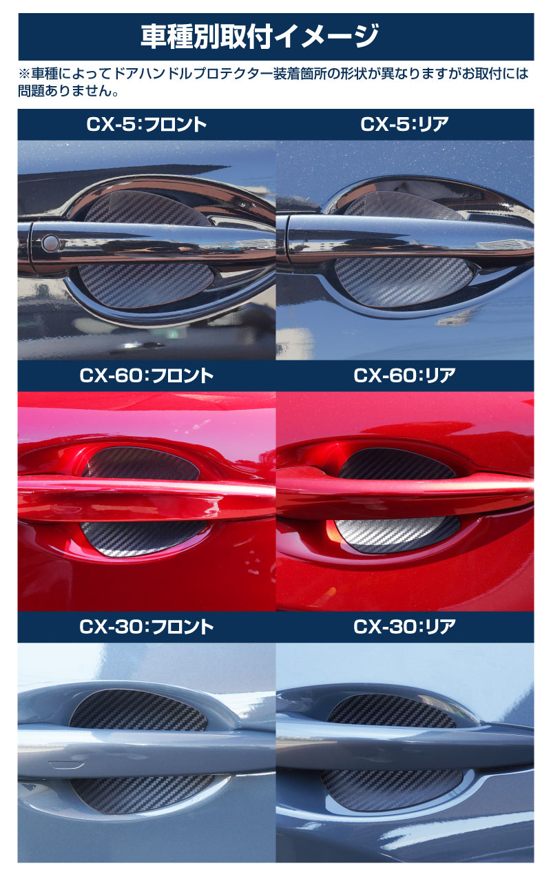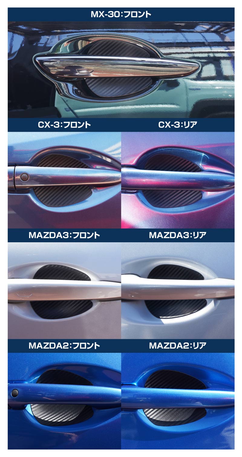 マツダ車 汎用設計 ドアハンドルプロテクター マグネットタイプ 4P カーボン柄 ブラック/ホワイト|MAZDA CX-5 CX-8 CX-30 CX-60 CX-80 MX-30 MAZDA2 MAZDA3 CX-3 引っかき傷防止 傷隠し 保護 カスタム パーツ ドレスアップ アクセサリー 社外品【メール便対象/代引き・配達日時指定不可】