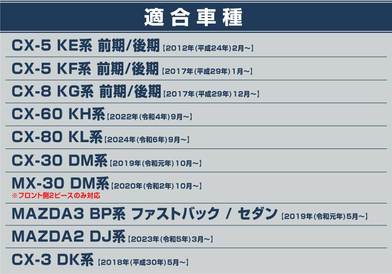 ■マツダ MX-30 DM系【2020(令和2)年年10月〜)【※フロント側2ピースのみ対応】