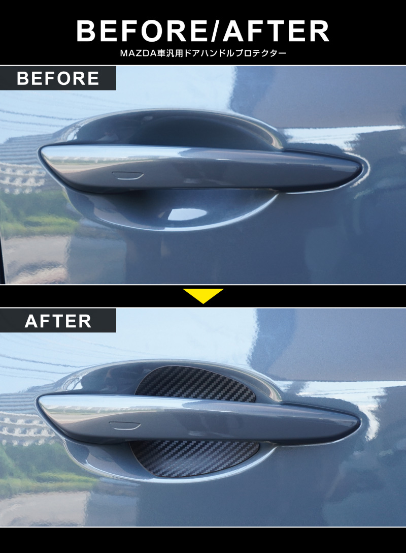 マツダ車汎用設計のドアハンドル内側に装着する保護パーツです。
