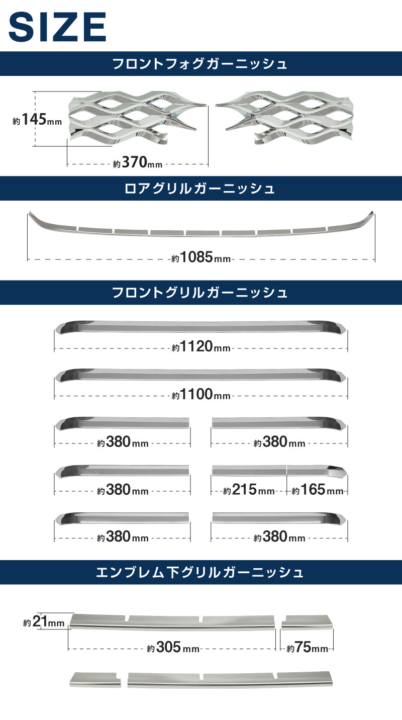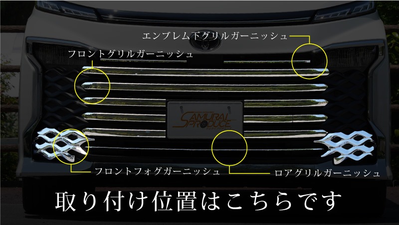 新型ヴォクシー 90系 フロントエンブレム下 グリルガーニッシュ 4P 鏡面仕上げ|トヨタ TOYOTA VOXY 90 95 専用 外装 カスタム パーツ グリル ドレスアップ アクセサリー 社外品 オプション エアロ【予約販売/12月20日頃入荷予定】