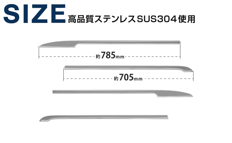 素材には耐久性に優れたステンレスSUS304を採用しており、末永くお車と一緒にお付き合いいただけます。