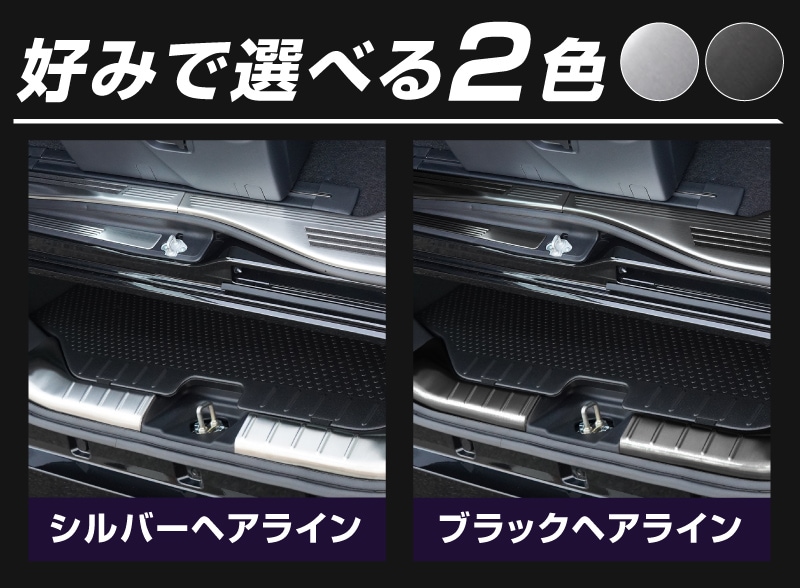 新型タント/タントカスタム/ファンクロス 後期専用 ラゲッジスカッフプレート 2P 選べる2色 シルバー ブラック|ダイハツ DAIHATSU Tanto Tanto CUSTOM FUNCROSS LA650S LA660S ドレスアップ アクセサリー 社外品 専用 リア 保護 パーツ