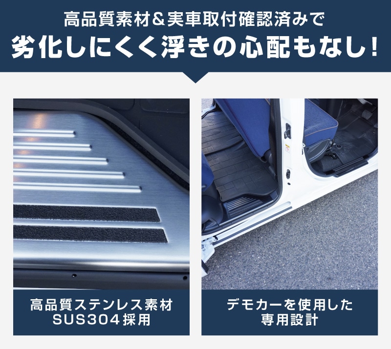 素材には耐久性に優れた高品質ステンレスSUS304を採用しており、末永くお車と一緒にお付き合いいただけます。