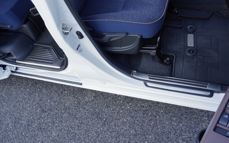 ダイハツ 新型ムーヴ、ムーヴキャンバス、スバル ステラ共通設計のサイドステップ乗降口に装着する保護パーツです。