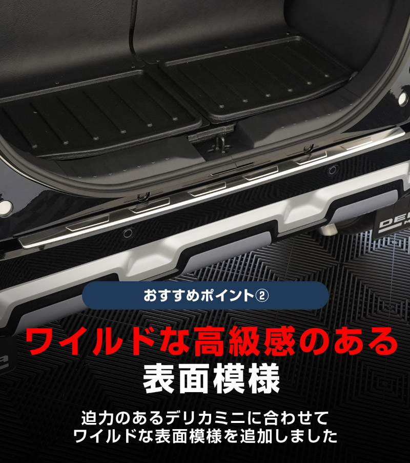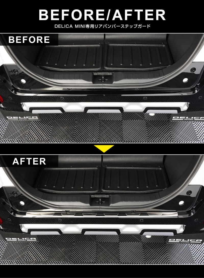 三菱 デリカミニ 専用 リアバンパーステップガード 1P 車体保護ゴム付き 選べる3色 シルバー ブラック カーボン調|MITSUBISHI DELICA MINI 外装 トランク 保護 パーツドレスアップ アクセサリー 社外品 エアロ