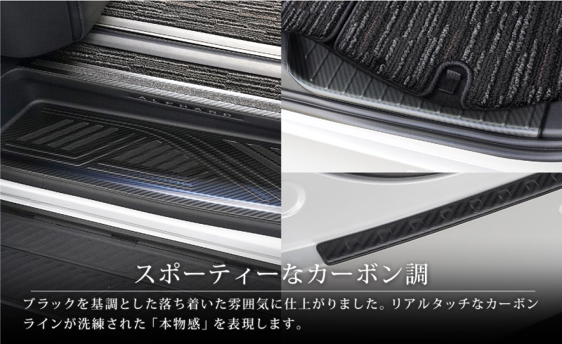 新型アルファード/ヴェルファイア 40系 サイドステップ スカッフプレート フロント・リアセット カーボン調 8P 滑り止めゴム付き |TOYOTA トヨタ ALPHARD VELLFIRE 専用 内装 サイド 足元 保護 カスタムパーツ ドレスアップ アクセサリー 社外品