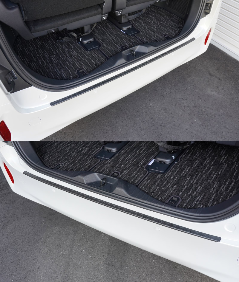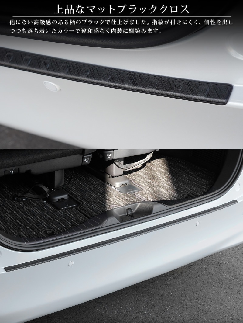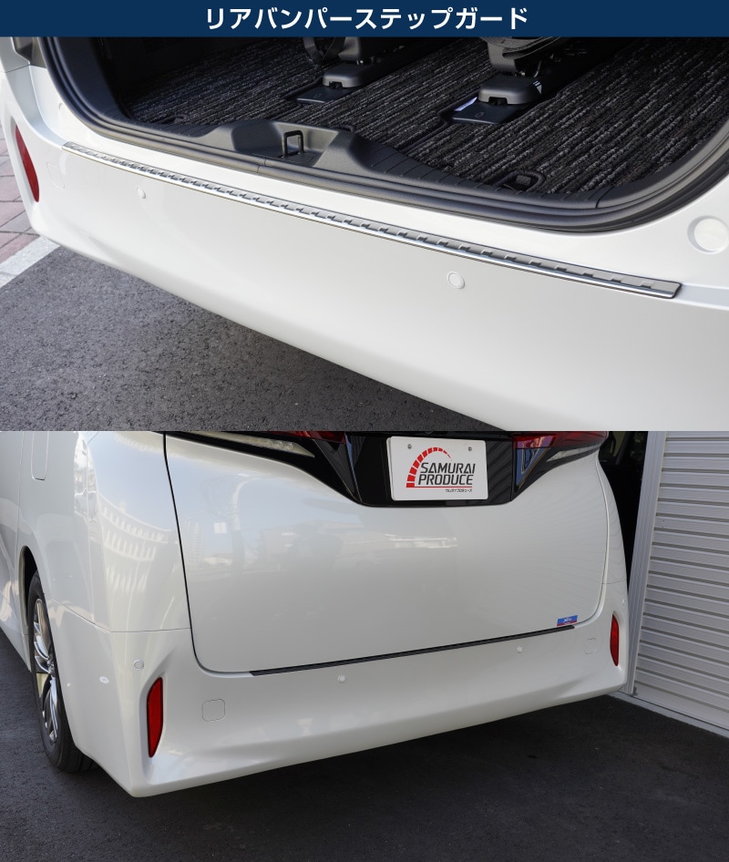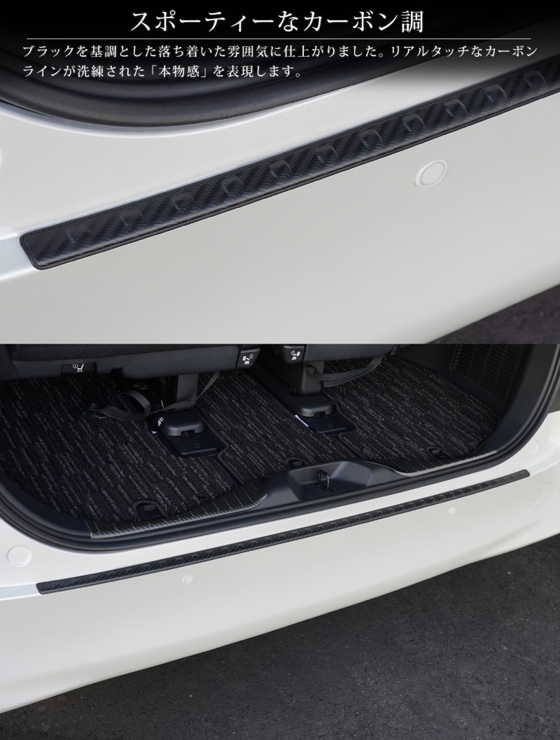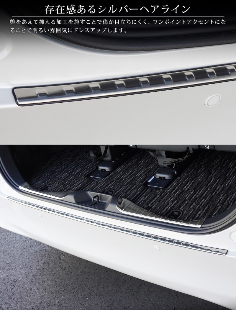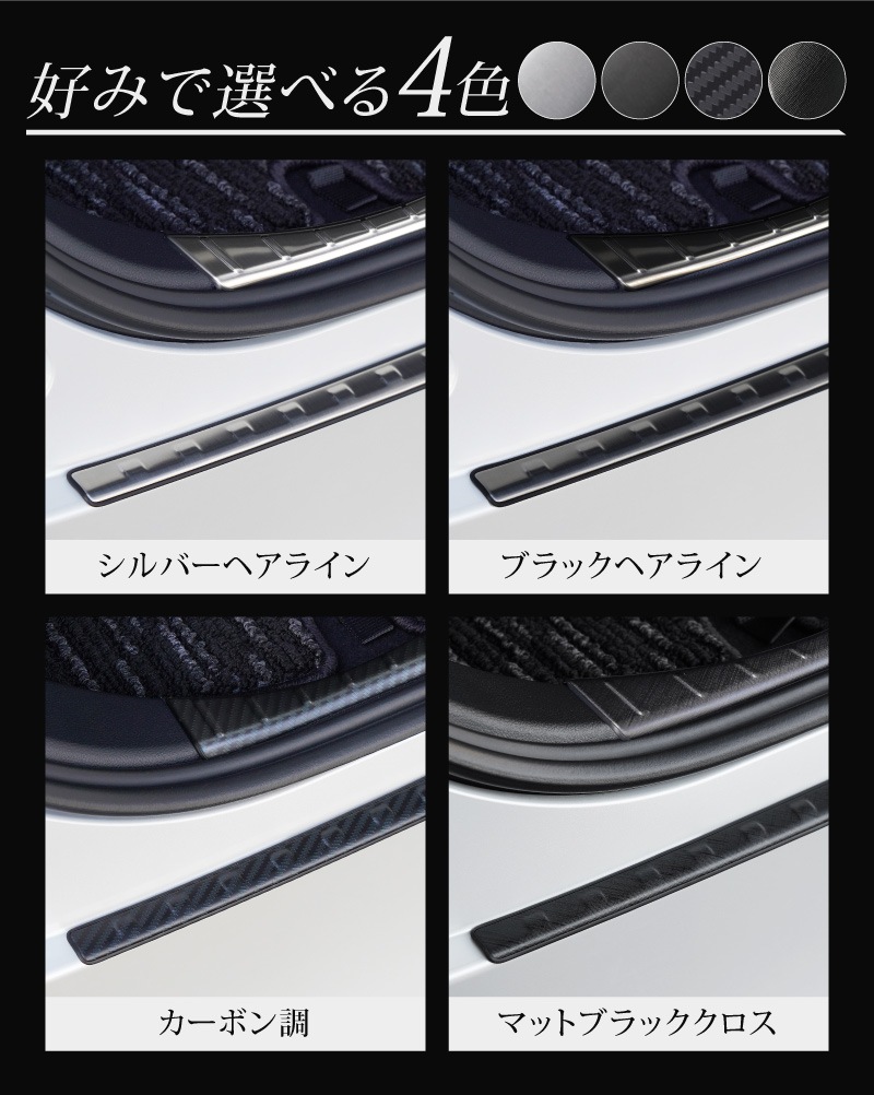 新型アルファード/ヴェルファイア 40系 リアバンパーステップガード 1P 車体保護ゴム付き 選べる4色 シルバーヘアライン ブラックヘアライン カーボン調 マットブラッククロス |TOYOTA トヨタ ALPHARD VELLFIRE 専用 外装 リア トランク 保護 カスタムパーツ ドレスアップ アクセサリー 社外品