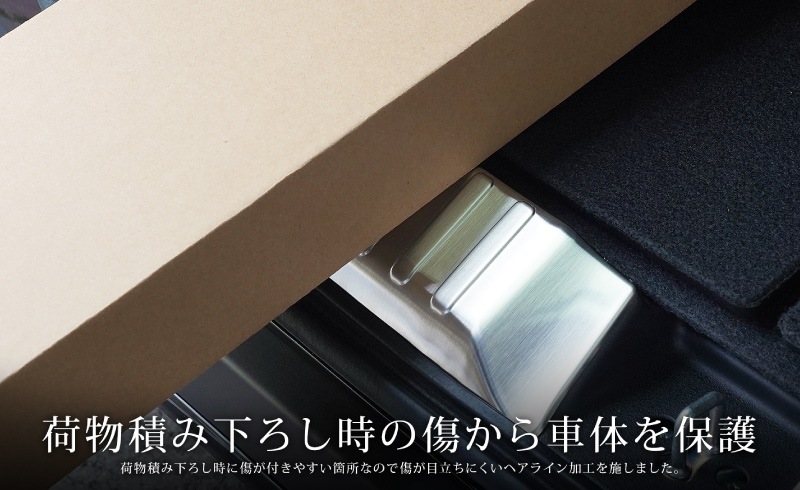 トップ > すべての商品 > 【2/15〜10%off】新型N-BOX N-BOX JOY 対応/N-BOXカスタム JF5 JF6 ラゲッジスカッフプレート 2P 選べる2色 シルバーヘアライン ブラックヘアライン |ホンダ HONDA NBOX CUSTOM ジョイ 専用 内装 リア トランク 保護 カスタム パーツ ドレスアップ アクセサリー 社外品