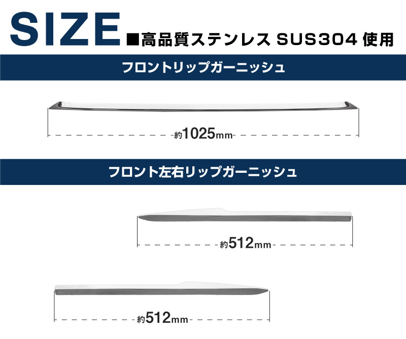 素材には耐久性に優れた高品質ステンレスSUS304を採用しており、末永くお車と一緒にお付き合いいただけます。