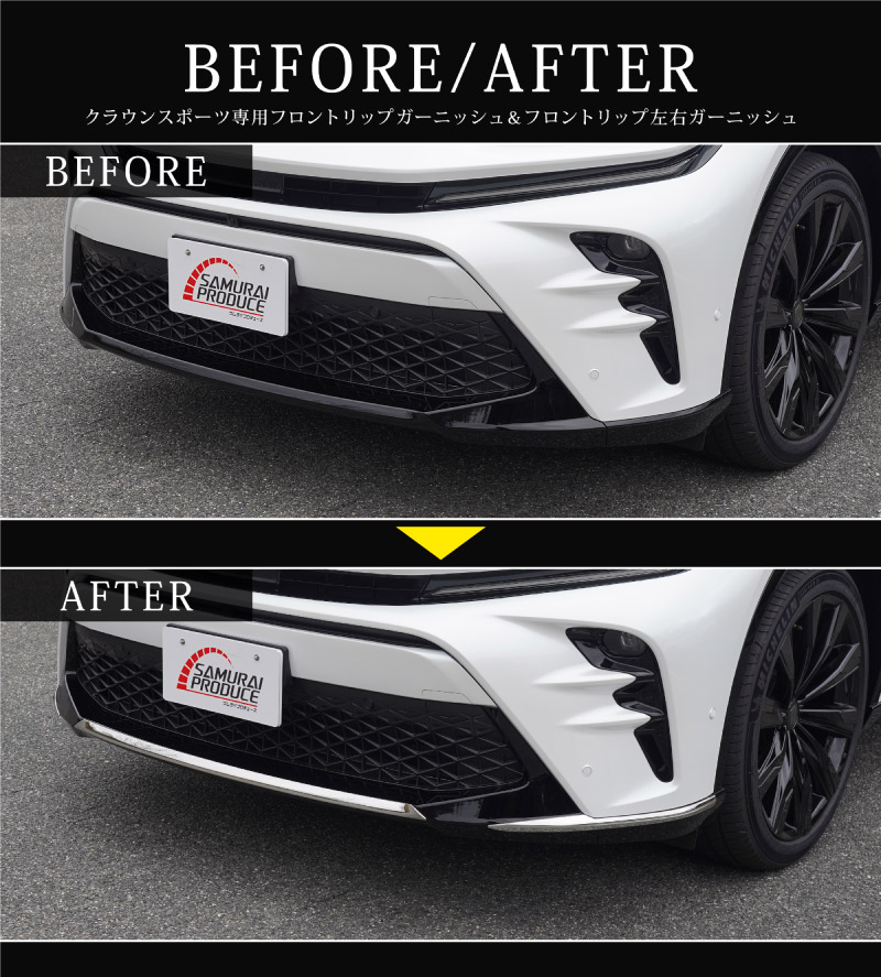 クラウンスポーツ専用設計のフロントバンパーに装着するメッキパーツのセットです。