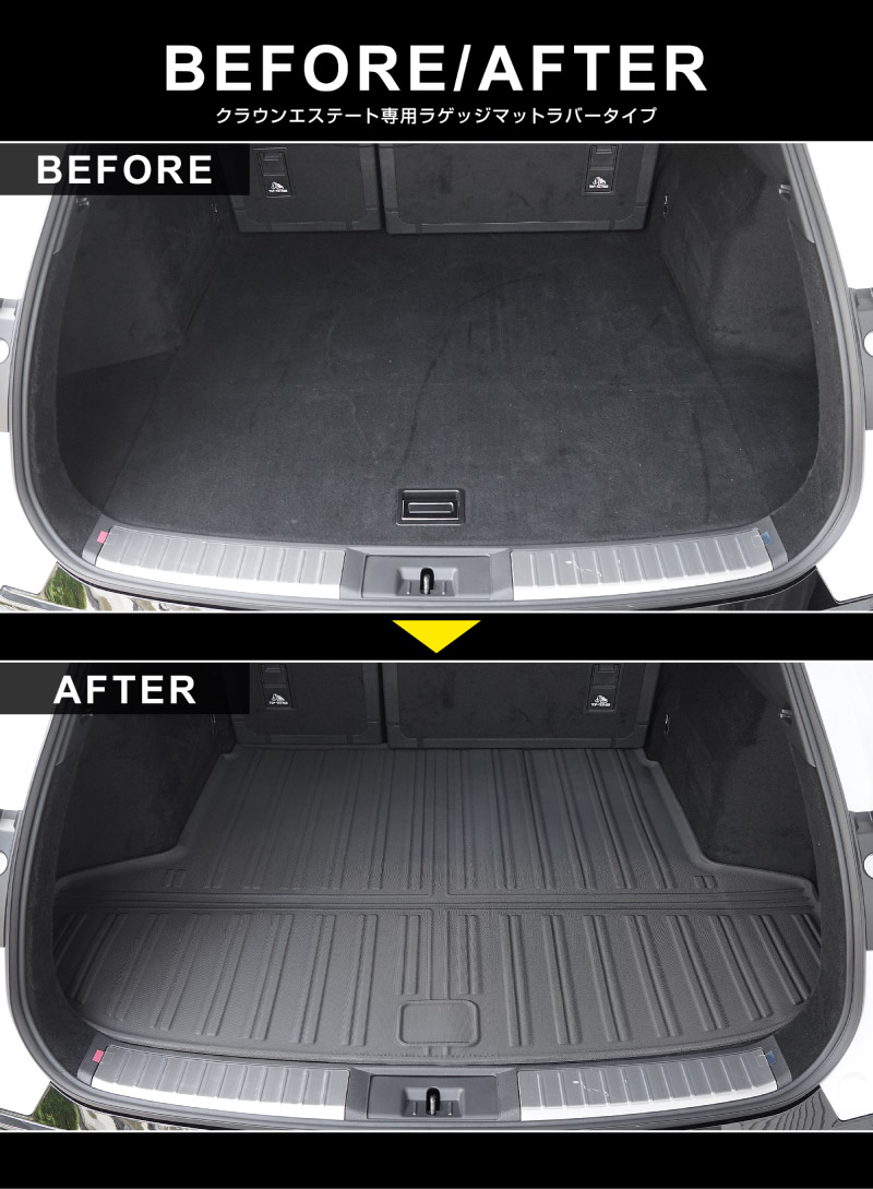| クラウンエステート専用設計のトランクに装着するラバータイプのマットです。 アウトドアやレジャー、スポーツなど、アクティブなシーンで活躍間違いなし。 荷物の積み下ろしでつきやすい汚れや傷からトランクをしっかりガードします。 防水仕様のTPE素材だから、泥汚れや水濡れも気にせず使えて、お手入れも水洗いで簡単。 広々としたラゲッジスペースにジャストフィットする専用設計で、ラゲッジボードの開閉や機能を妨げないスマートな構造です。 置くだけの簡単装着で使い勝手も抜群!毎日の使いやすさにこだわった実用アイテムです。 |