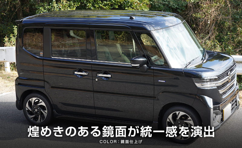 新型スペーシア スペーシアカスタム スペーシアギア MK54S MK94S フレアワゴン MM54S MM94S サイドガーニッシュ 4P 鏡面仕上げ|SUZUKI スズキ SPACIA CUSTOM GEAR マツダ MAZDA FLAIR WAGON 専用 外装 サイド カスタム パーツ ドレスアップ アクセサリー 社外品 エアロ