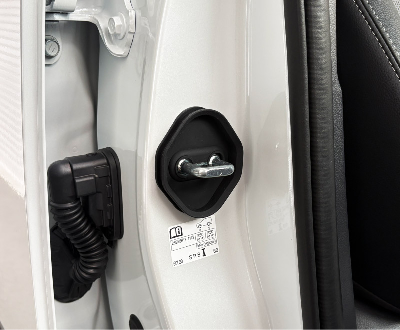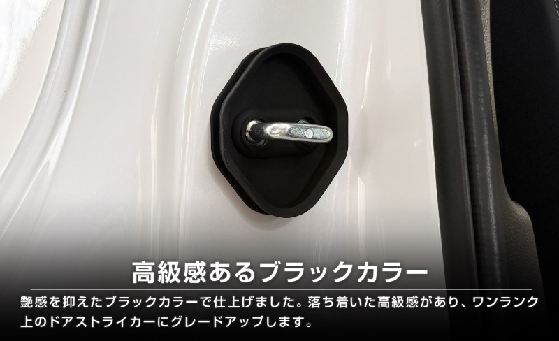 新型ランドクルーザー ランクル250 ランクル70 ドアストライカーカバー 4P ブラック|トヨタ ランクル TOYOTA LANDCRUISER 250系 70系 専用 内装 カスタム 保護パーツ ドアストッパーカバー ストライカーカバー ドレスアップ アクセサリー 社外品 オプション【メール便対象/代引き・配達日時指定不可】