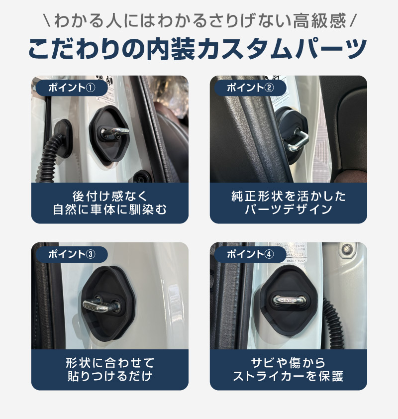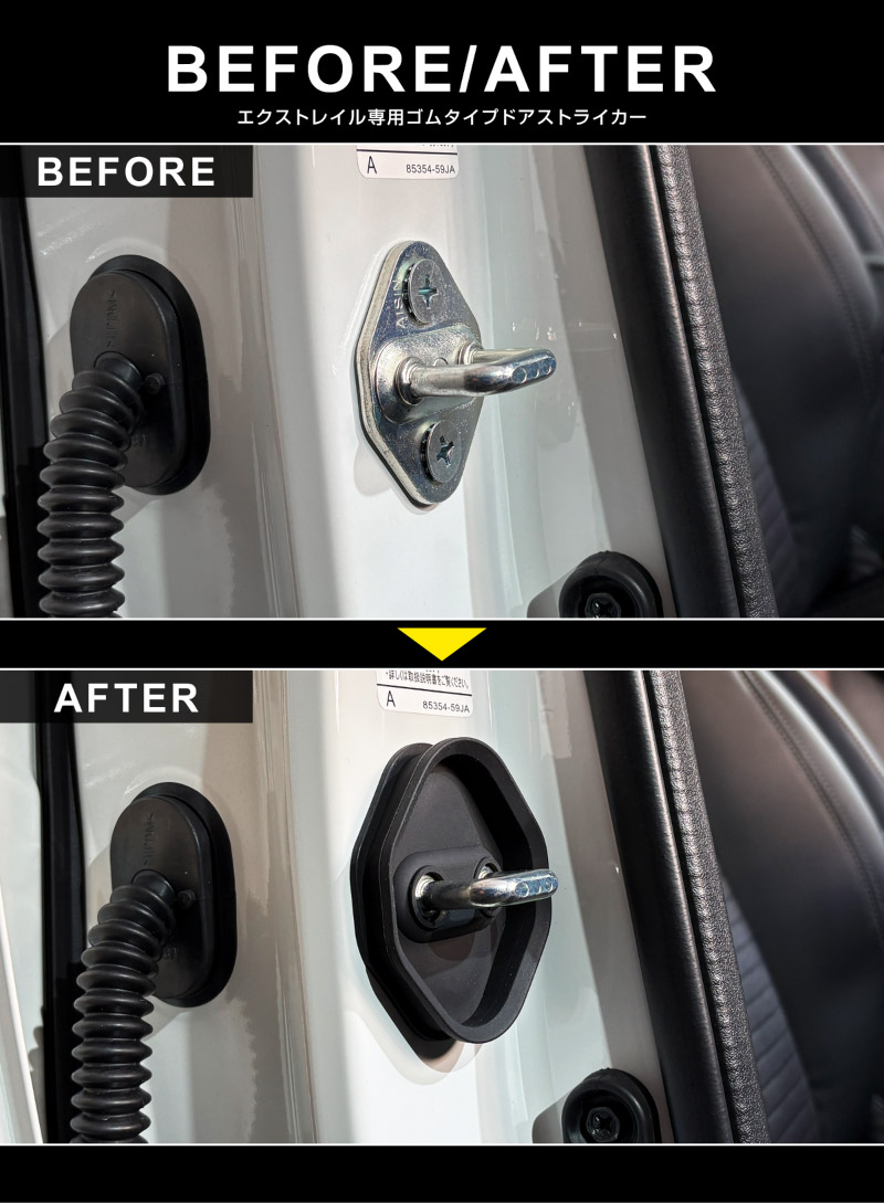 トップ > NISSAN 日産 > X-TRAIL T33型(令和4年7月〜)エクストレイル > 内装パーツ エクストレイル(X-TRAIL T33) > 新型エクストレイル T33 ゴムタイプ ドアストライカー 4P ブラック 2025年マイナーチェンジ後対応|日産 ニッサン NISSAN X-TRAIL 内装 カスタム 保護パーツ ドアストッパーカバー ストライカーカバー ドレスアップ アクセサリー 社外品 オプション【メール便対象/代引き・配達日時指定不可】