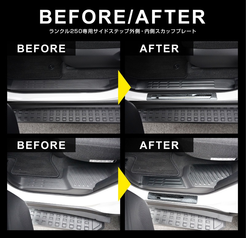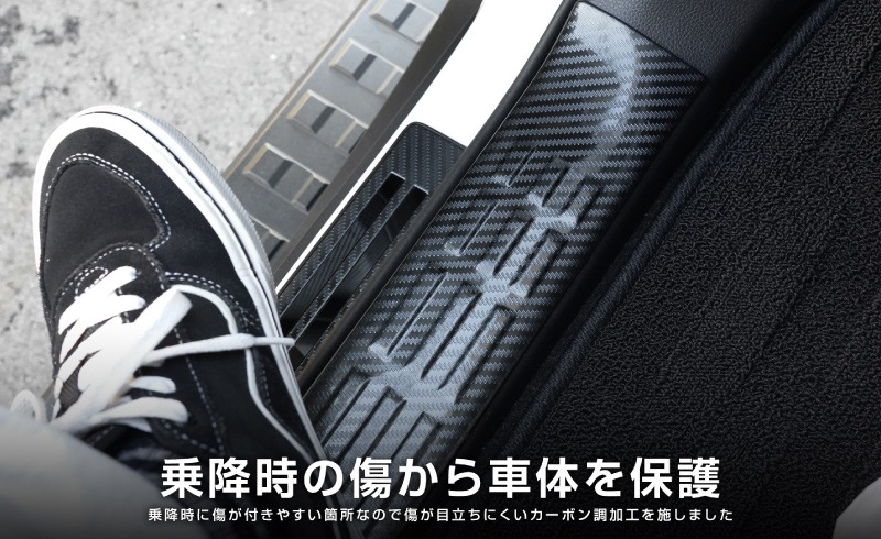 新型ランドクルーザー ランクル250 サイドステップ内側 スカッフプレート 6P カーボン調|トヨタ ランクル TOYOTA LANDCRUISER 250系 専用 カスタム パーツ ドレスアップ アクセサリー オプション 内装 カー用品 社外 サイドシル 保護 傷防止 キズ隠し