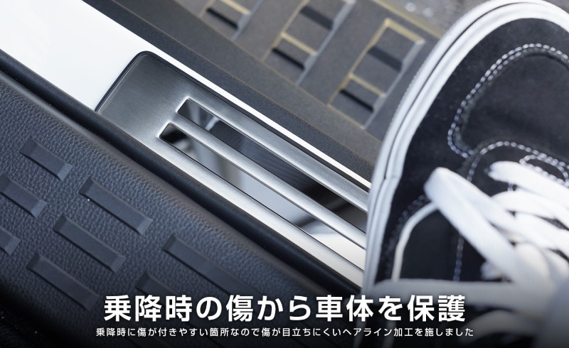 新型ランドクルーザー ランクル250 サイドステップ内側 スカッフプレート 6P ブラックヘアライン|トヨタ ランクル TOYOTA LANDCRUISER 250系 専用 カスタム パーツ ドレスアップ アクセサリー オプション 内装 カー用品 社外 サイドシル 保護 傷防止 キズ隠し【予約販売/12月20日頃入荷予定】