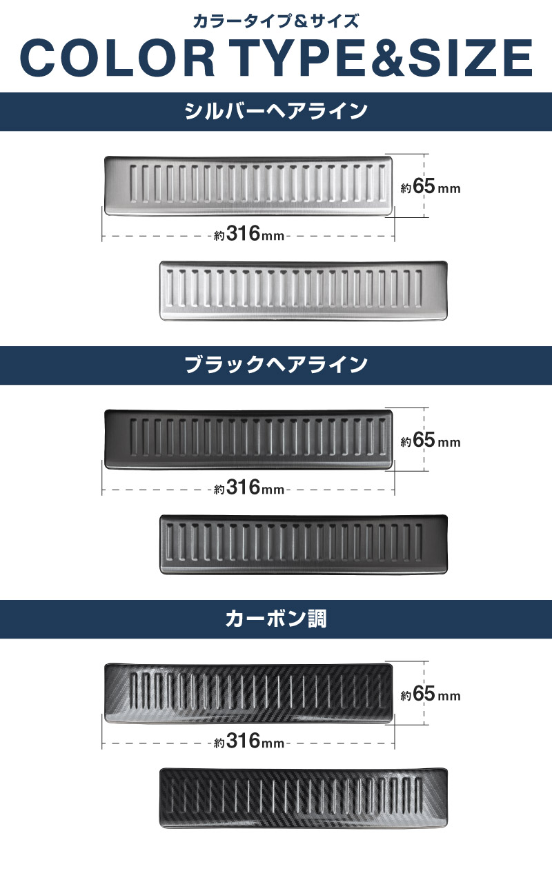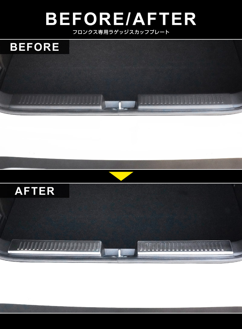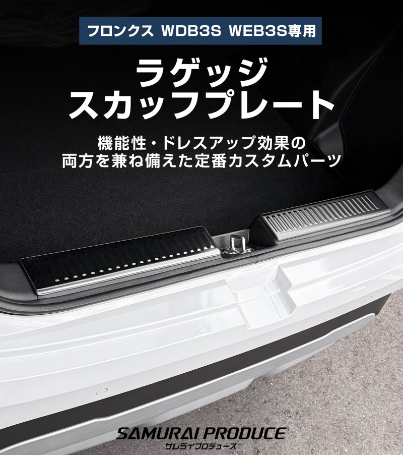 フロンクス ラゲッジスカッフプレート 2P 車体保護ゴム付き 選べる3カラー シルバーヘアライン ブラックヘアライン カーボン調|スズキ SUZUKI FRONX WDB3S WEB3S 専用 カスタム パーツ ドレスアップ アクセサリー オプション 内装 社外 カー用品 トランク ラゲージ 荷室 保護 傷防止 キズ隠し【予約販売/ブラック・カーボン調:3月20日頃入荷予定】