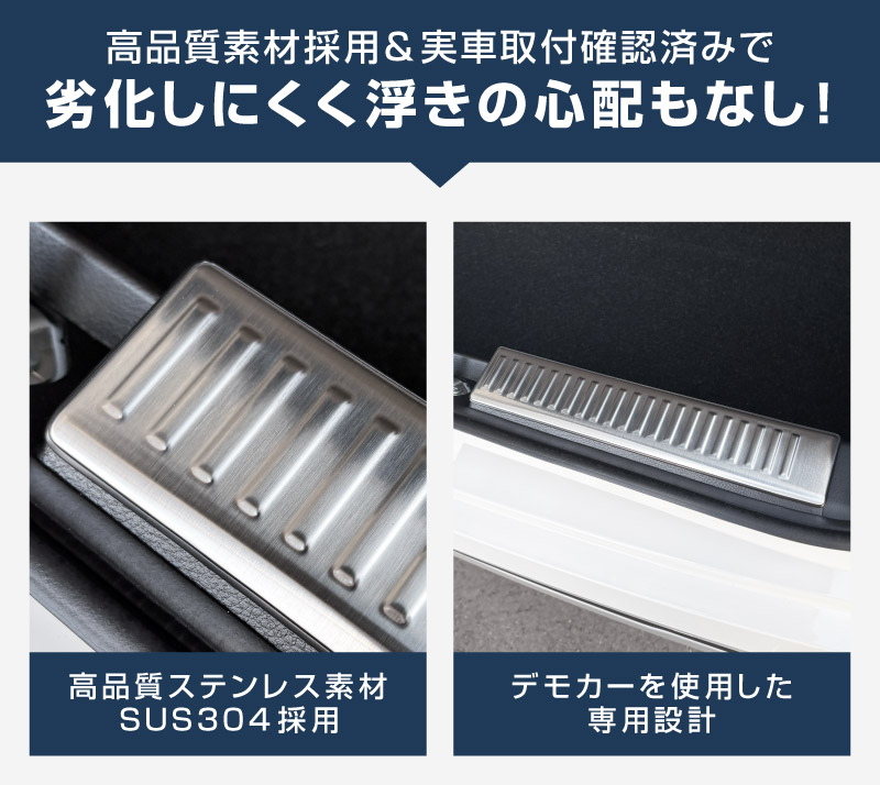 素材には耐久性に優れた高品質ステンレスSUS304を採用しており、末永くお車と一緒にお付き合いいただけます。
