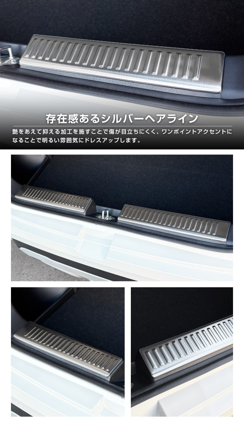 トップ > SUZUKI スズキ > フロンクス【2024(令和6)年10月〜】FRONX > 内装パーツ フロンクス(FRONX)【2024(令和6)年10月〜】 > フロンクス ラゲッジスカッフプレート 2P 車体保護ゴム付き 選べる3カラー シルバーヘアライン ブラックヘアライン カーボン調|スズキ SUZUKI FRONX WDB3S WEB3S 専用 カスタム パーツ ドレスアップ アクセサリー オプション 内装 社外 カー用品 トランク ラゲージ 荷室 保護 傷防止 キズ隠し【予約販売/ブラック・カーボン調:3月20日頃入荷予定】