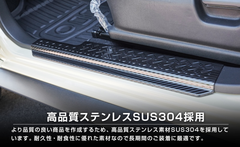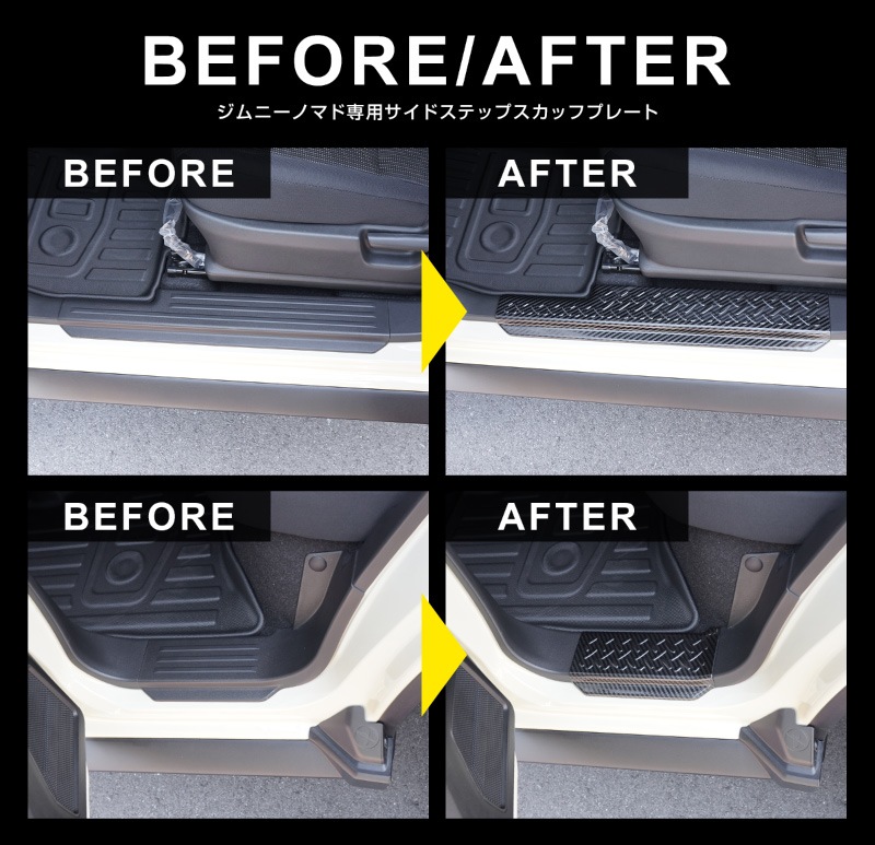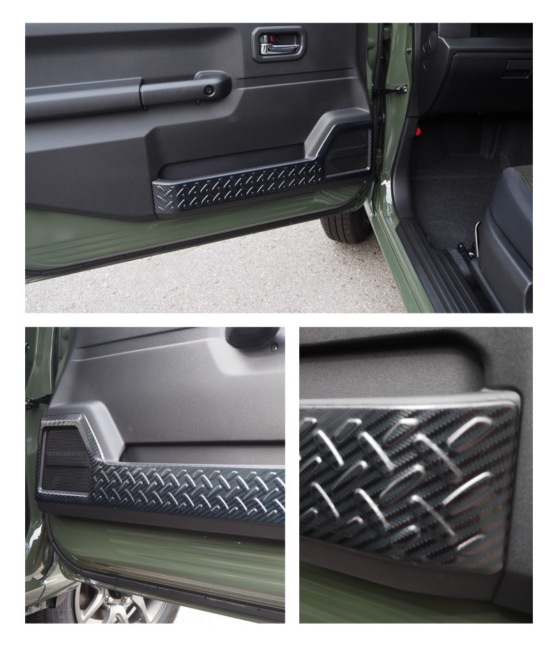 | ジムニーノマド専用のサイドステップ乗降部とサイドドア内側をトータルでドレスアップ&保護できる専用パーツセットです。 乗り降りの際に踏み傷や足が当たりやすい樹脂部分をしっかりガードし愛車を美しくキープ。 タフで無骨な印象を引き立てる縞鋼板柄デザインを採用しており、ジムニーノマドのワイルドなスタイルに自然に調和します。 カラーはカーボン調で車体色を問わず自然にマッチします。 サムライプロデュース所有のデモカーをもとに形状を確認・製作しておりフィッティング精度には自信あり。 デザイン・素材・安全性にこだわった「サムライプロデュースクオリティ」を存分にご体感いただけます。 取り付けは裏面の両面テープで貼り付けるだけ。特別な工具を使わず、どなたでも簡単に装着可能です。 実用性とドレスアップ効果を兼ね備えた、ジムニーノマドオーナー必見のアイテムです。 |