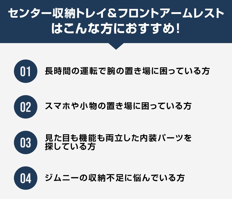 | ・フロントアームレスト 1P ・センター収納トレイ 1P ・フロントインナードアポケットトレイ 2P |