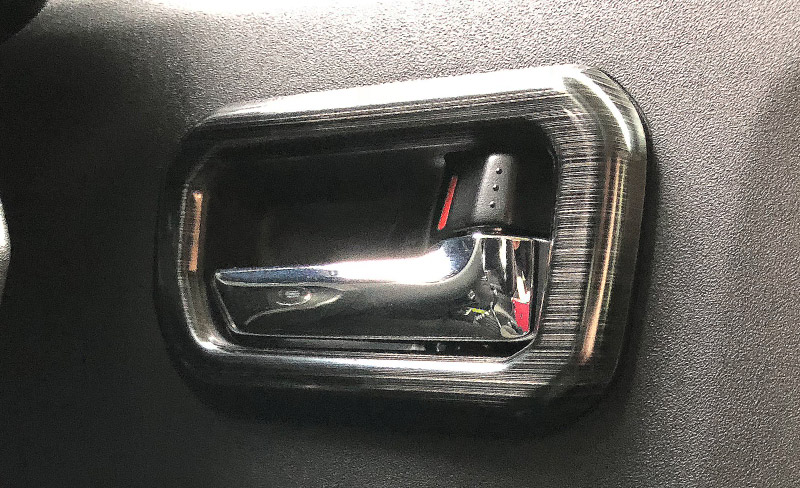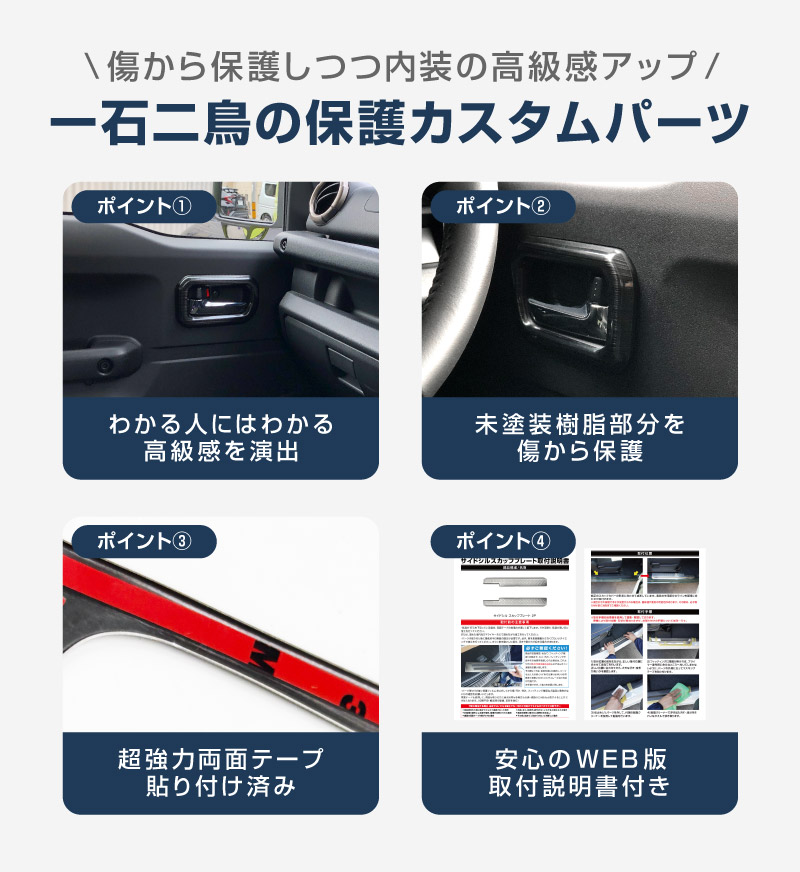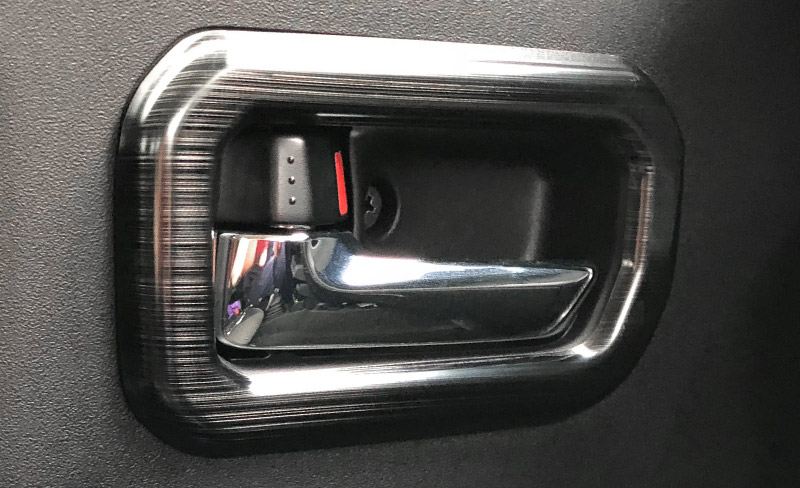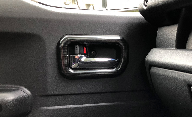 | ジムニーノマド専用の内装ドアハンドルに装着するドレスアップパーツです。 取り付けることで、少し地味な印象がある車内の雰囲気を明るくすることができます。 派手過ぎないシックで落ち着いたブラックで仕上げており、美しいディティールが組み合わさってジムニーノマド本来のワイルド感が引き立ちます。 ヘアライン加工を施しているので指紋が残りにくく、使用感が目立ちません。 サムライプロデュース所有のデモカーから形状を確認して製作しましたので、フィッティングも自信あり! 素材には、高品質ステンレス(SUS304)を採用しています。 デザイン・素材・安全性全てにこだわったサムライプロデュースクオリティをお楽しみください。 お取り付けは、裏面に装着済みの両面テープで貼り付けるだけで、大掛かりな準備も必要なくどなたでも簡単にお取り付けいただけます。 |