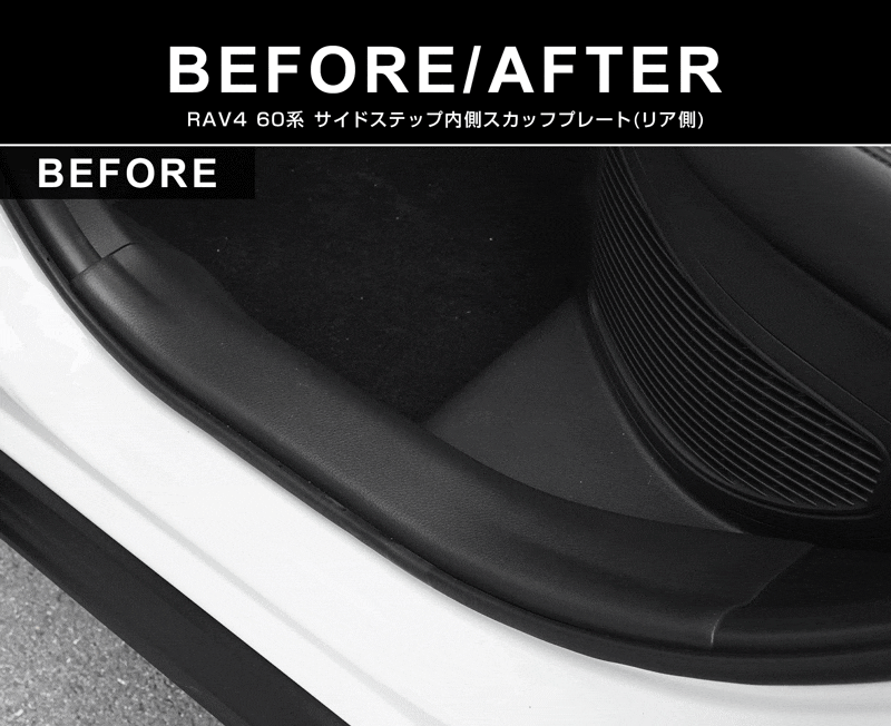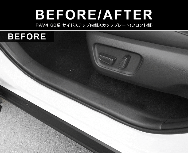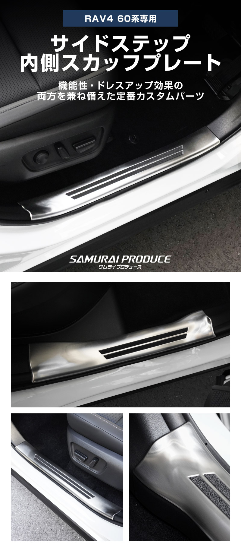 2025年12月発売の新型RAV4(60系)専用設計、サイドステップ内側の樹脂部分に装着する保護パーツです。