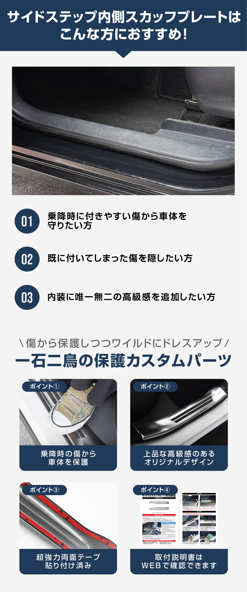 乗降時にうっかり傷が付きやすい部分をしっかりとガード!