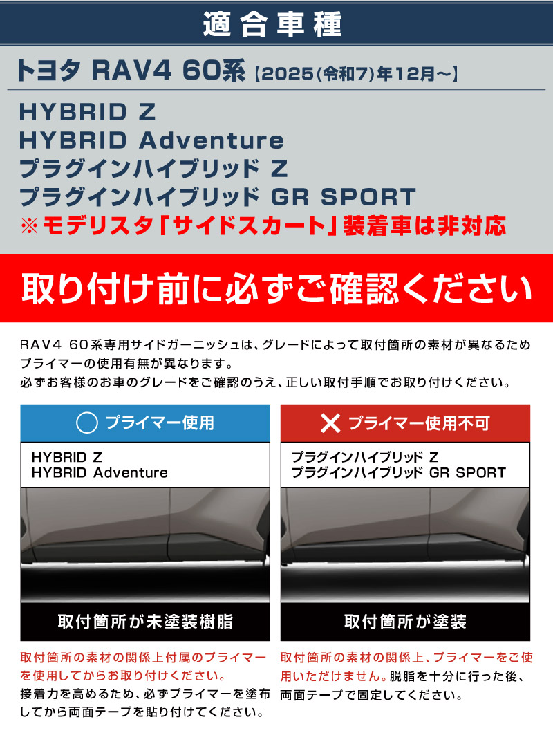 2025年12月発売の新型RAV4(60系)専用設計、サイドドア下部に装着するドレスアップパーツです。