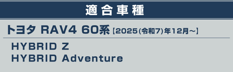 ■トヨタ RAV4 60系【2025(令和7)年12月~】 【対応グレード】 HYBRID Z HYBRID Adventure プラグインハイブリッド Z プラグインハイブリッド GR SPORT |