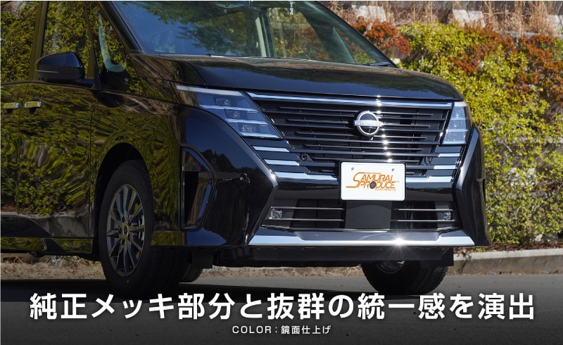 新型セレナ C28 ハイウェイスター/e-POWER 専用 フロントリップガーニッシュ 1P 鏡面仕上げ|ニッサン NISSAN SERENA C28型 専用 外装 カスタム パーツ ドレスアップ アクセサリー 社外品 エアロ