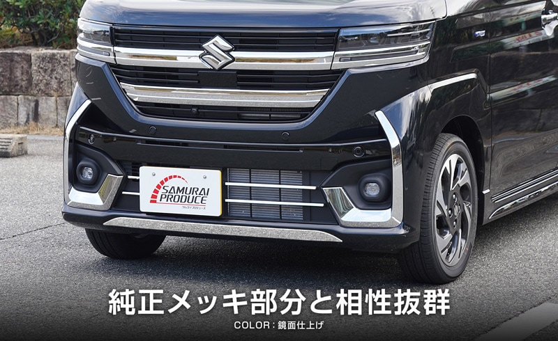 新型 スペーシアカスタム MK54S MK94S フレアワゴンカスタムスタイル MM54S MM94S フロントリップガーニッシュ 1P 鏡面仕上げ|SUZUKI スズキ SPACIA CUSTOM マツダ MAZDA FLAIR WAGON Custom Style専用 外装 フロント カスタム パーツ ドレスアップ アクセサリー 社外品 エアロ