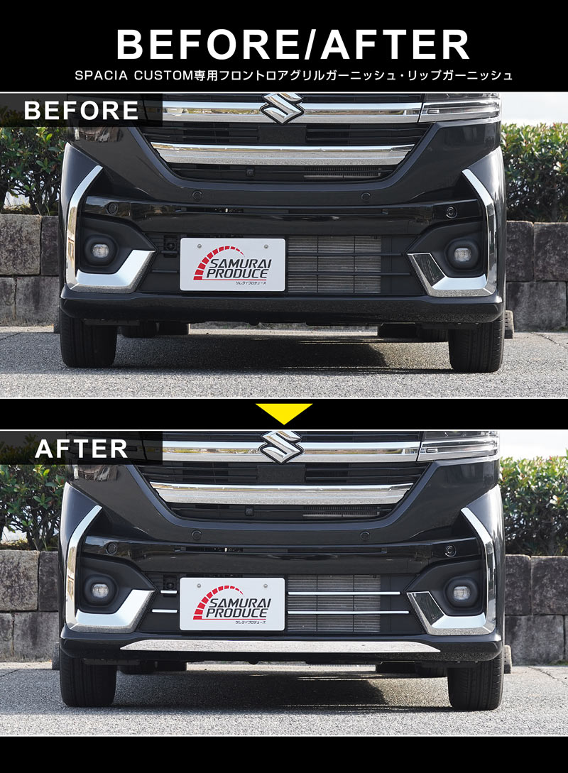 【セット割】新型スペーシアカスタム MK54S MK94S フロント&ロアグリル&フロントリップ ガーニッシュ 外装パーツセット 鏡面仕上げ|SUZUKI スズキ SPACIA CUSTOM 専用 外装 フロント グリル カスタム パーツ ドレスアップ アクセサリー 社外品 エアロ