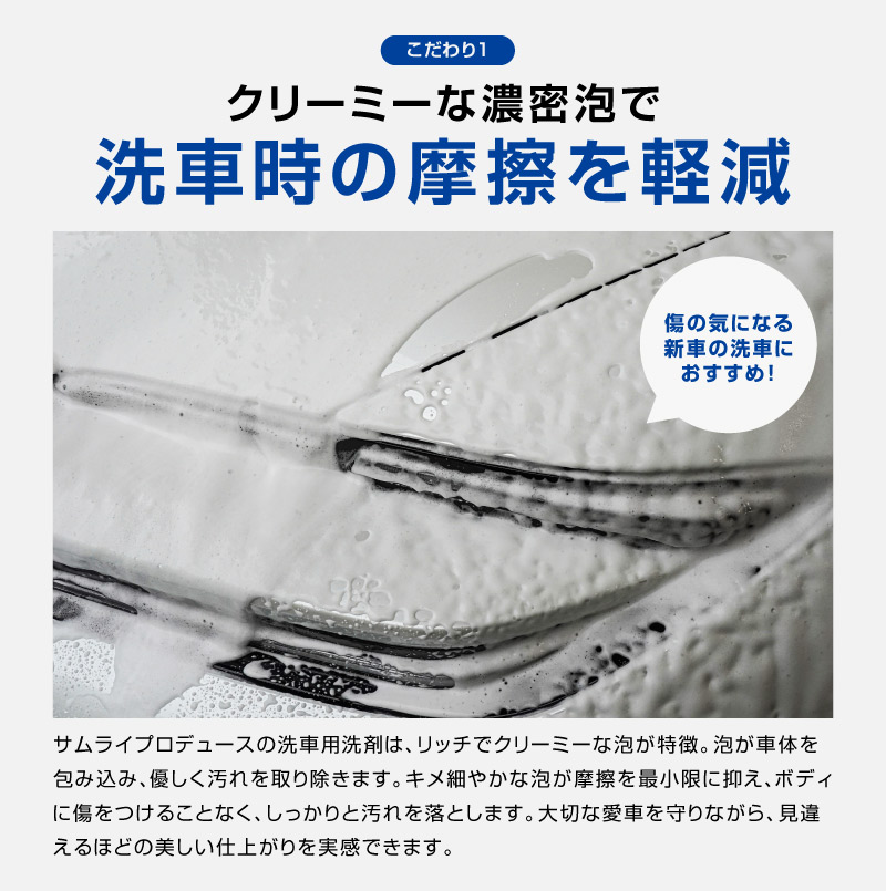 サムライウォッシュ 濃密泡カーシャンプー 100ml|希釈タイプ 中性 全車色対応 コーティング車OK ノーコンパウンド 新車・初めての洗車に最適 泡洗車 自動車用洗浄剤 洗車用