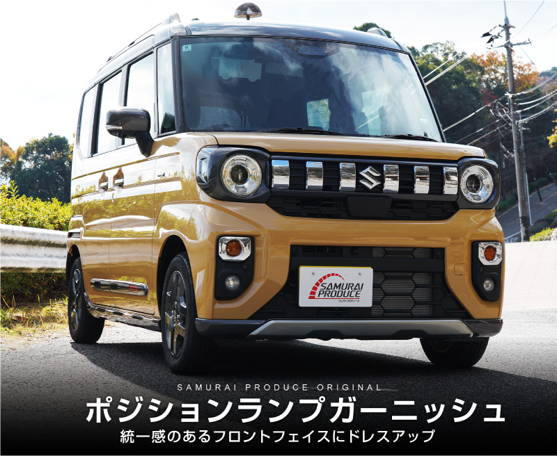 新型スペーシアギア MK54S MK94S フレアワゴンタフスタイル MM54S MM94S ポジションランプガーニッシュ 2P メッキ仕上げ|SUZUKI スズキ SPACIA GEAR マツダ MAZDA FLAIR WAGON TOUGH STYLE 専用 フロント カスタム パーツ ドレスアップ アクセサリー オプション カー用品 社外 カバー