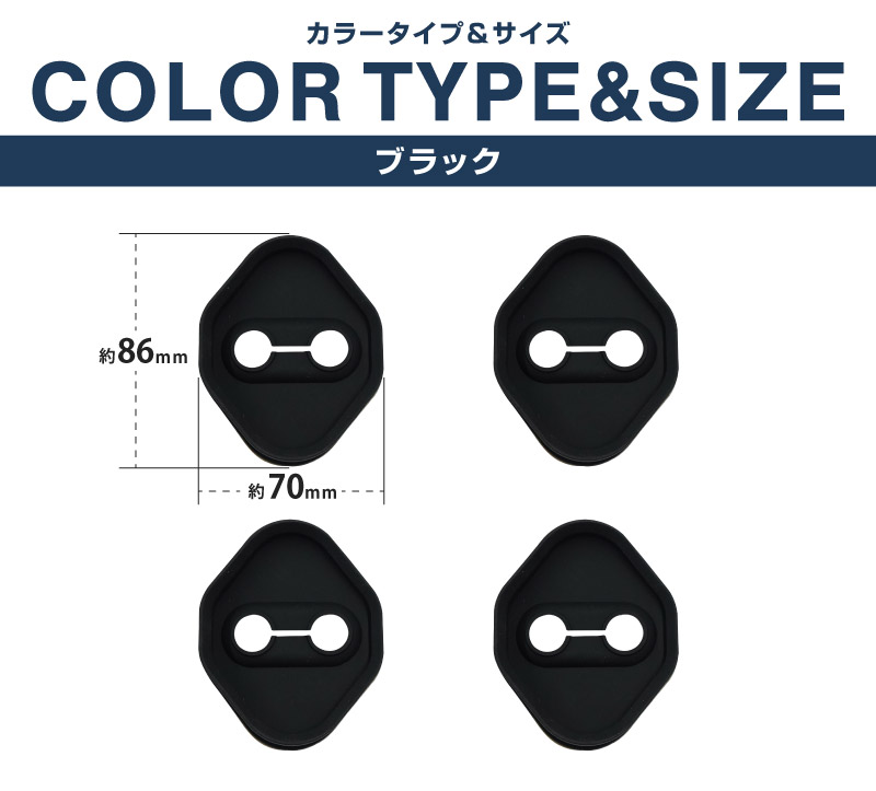 素材はゴム製で、ドアを閉める際の摩擦を軽減し、ドアロック部分を損傷から守ります。また、ドアを閉める音を和らげる効果もあります。