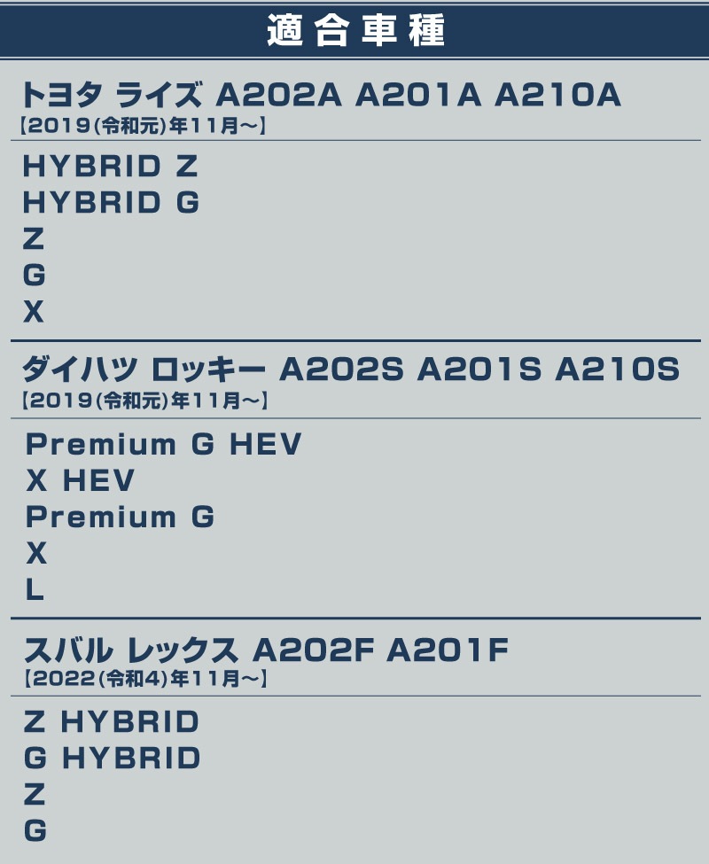 ■トヨタ ライズ A202A A201A A210A【2019(令和元)年11月〜】