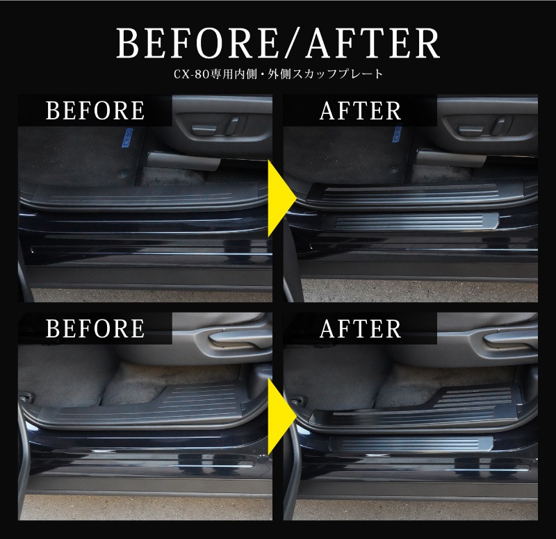 CX-80 KL系 スカッフプレート サイドステップ内側 フロント・リアセット 4P 滑り止め付き ブラックヘアライン|マツダ MAZDA CX80 専用 内装 カスタム パーツ ドレスアップ アクセサリー オプション 内装 社外 保護 傷防止 キズ隠し