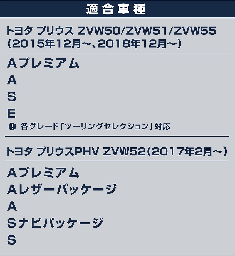 2018(平成30)年12月に販売開始されたマイナーチェンジ後の新型プリウスにも装着可能を、実車にて確認済み。
